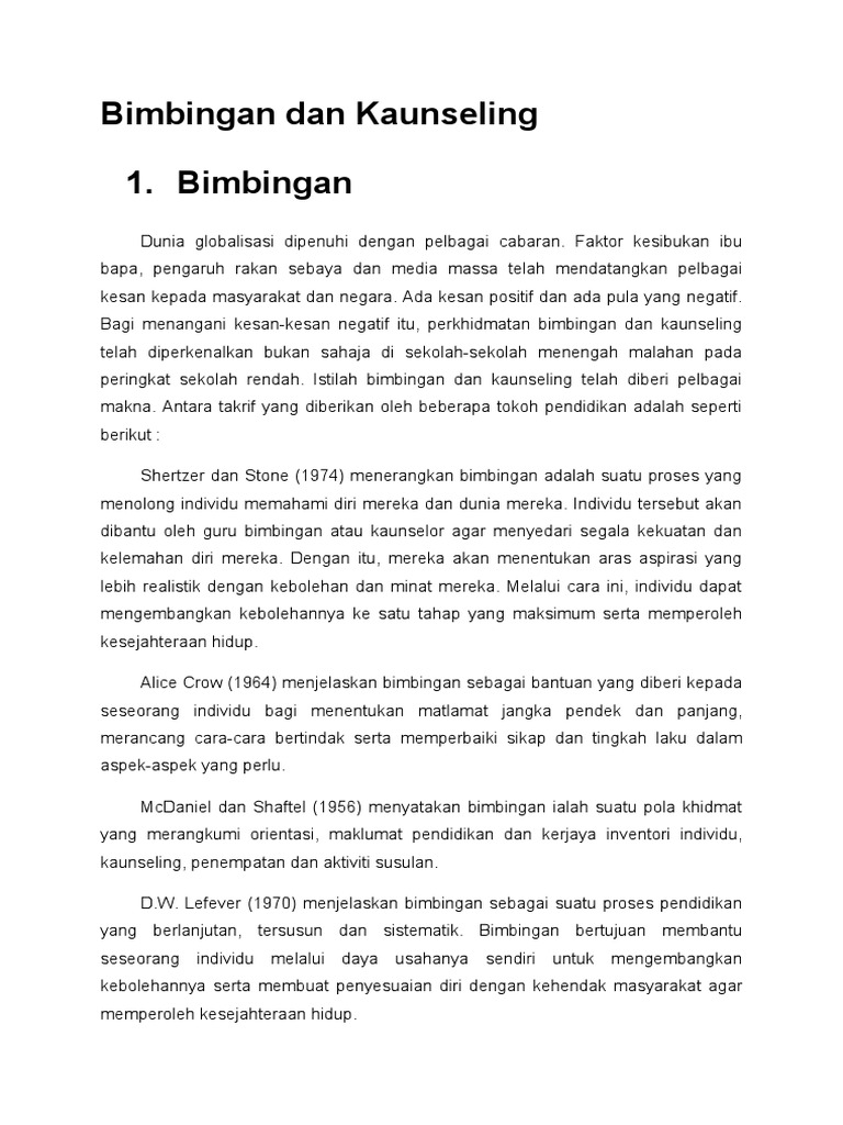 *hadiah perancangan strategik unit bimbingan dan kaunseling yang terkini akan diberikan untuk contoh dan boleh edit untuk kegunaan sekolah masing. Mungkin sebab itu juga dia menurunkan masalah, sebagai balasan atas perbuatan kita, kedegilan kita. Apa itu perkhidmatan bimbingan & kaunseling. Tidak boleh dilakukan sebelum atau selepas waktunya. Kata guindance berasal dari kata kerja menurut shertzer dan stone mengartikan bimbingan sebagai proses pemberian bantuan kepada individu agar mampu memahami diri dan lingkungannya. dalam proses bimbingan dan kaunseling, kaunselor tidak boleh memberitahu kepada klien apa yang hendak dilakukan, tetapi kaunselor membantu klien itu menghadapi masalah yang dihadapi. Ia dijalankan oleh kaunselor profesional bagi membantu. Antara kaunseling dan psikoterapi ialah matlamat dan kaedah. Bimbingan dan konseling merupakan upaya proaktif dan sistematik dalam memfasilitasi individu mencapai tingkat perkembangan yang optimal, pengembangan perilaku yang efektif, pengembangan lingkungan, dan peningkatan fungsi atau manfaat individu dalam lingkungannya. Berpakaianlah kemas dan sopan seperti yang ditetapkan. Suatu proses perhubungan menolong yang sistematik berasaskan prinsip psikologi. Oleh itu, kita dapat lihat bahawa perkhidmatan bimbingan dan kaunseling sangat penting untuk membantu masalah yang dihadapi oleh individu. Membagi pekerjaan menet … apkan tugas dan tanggung jawabc membentuk susunan jabatan dan peranand.