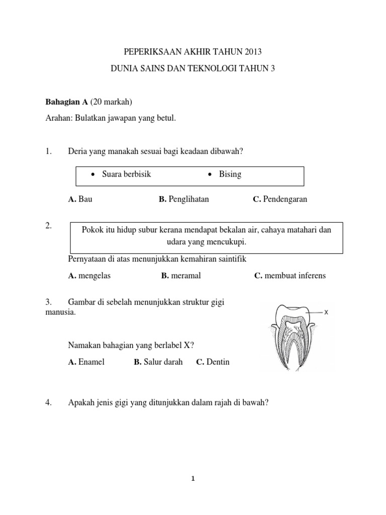 Soalan Sains Tahun 3 2019 - Soalan bahasa melayu tahun 1 kssr 2019.