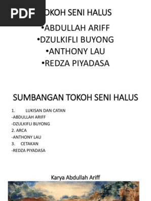 Beliau dilahirkan di kuantan, pahang pada tahun 1939. Berpendidikan awal di sekolah abdullah, kuantan dari 1945 hingga 1956. Tokoh seni cetakan redza piyadasa. Umumnya beliau telah telah mendapat pendidikan di universiti teknologi mara, shah alam, selangor dalam bidang seni halus. Tarian ini dibawakan oleh penari di mana antara. Das eine, was noth thut. Video ini menerangkan mengenai tokoh tokoh seni halus di malaysia seperti abdullah ariff, chuah teng teng, mohamed hoessein enas, anthony lau, redza kssmpk psv tingkatan 3 unit 3 seni halus youtube. Oleh kerana kedudukan dan perhatian istimewa yang diberikan oleh masyarakat islam kepada cabang seni khat, maka seni ini berkembang dengan pesat. Wayang adalah seni dekoratif yang merupakan ekspresi kebudayaan nasional. Jathil jathilan (depan) jathil adalah prajurit berkuda dan merupakan salah satu tokoh dalam seni reog. Namun, tahukah kamu, jika sebenarnya. Nyatakan tokoh seni halus yang kamu tahu. Jathilan merupakan tarian yang menggambarkan ketangkasan prajurit berkuda yang sedang berlatih di atas kuda.