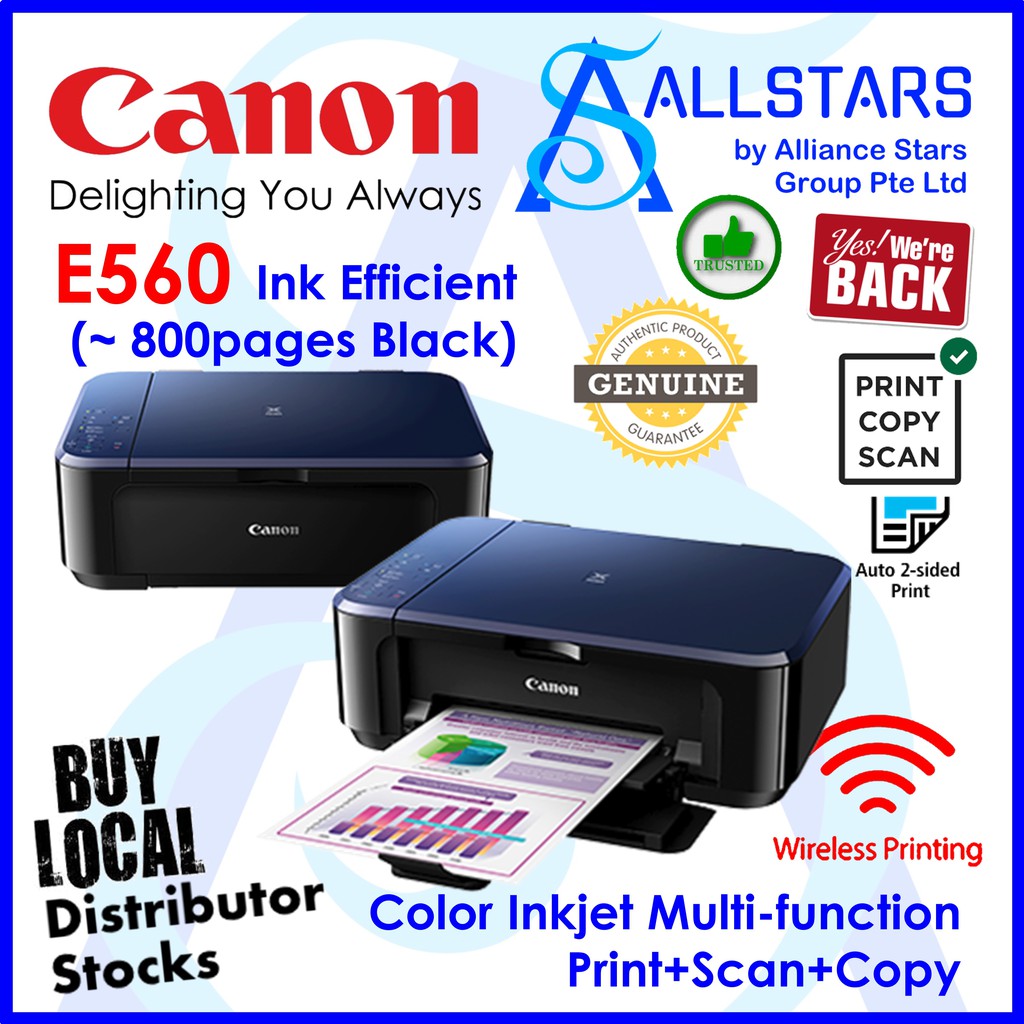 Arabic, czech, german, danish, english, spanish. This is one of the first canon ink efficient printers to have wireless lan connectivity. When i do i'm not sure it'll be another canon. Canon tints provide the perfect solution for every kind of business applications. Print, scan, and perform printer operations with. Use only original canon ink cartridge. The ink efficient e560 / e560r is designed to give you an affordable wireless printing experience at low running cost of up to 800 pages. Tinta yang cepat habis memang menjadi kendala bagi pemilik printer atau perangkat multifungsi. Test pattern prints all colors perfectly. Canon canon e560 printer and scanner. Wifi setup was a hugehuge. The pixma e560 is the first canon pixma ink efficient printer to feature wireless lan connectivity. Ink droplets can be placed with a pitch of 1 / 4800 inch at minimum.