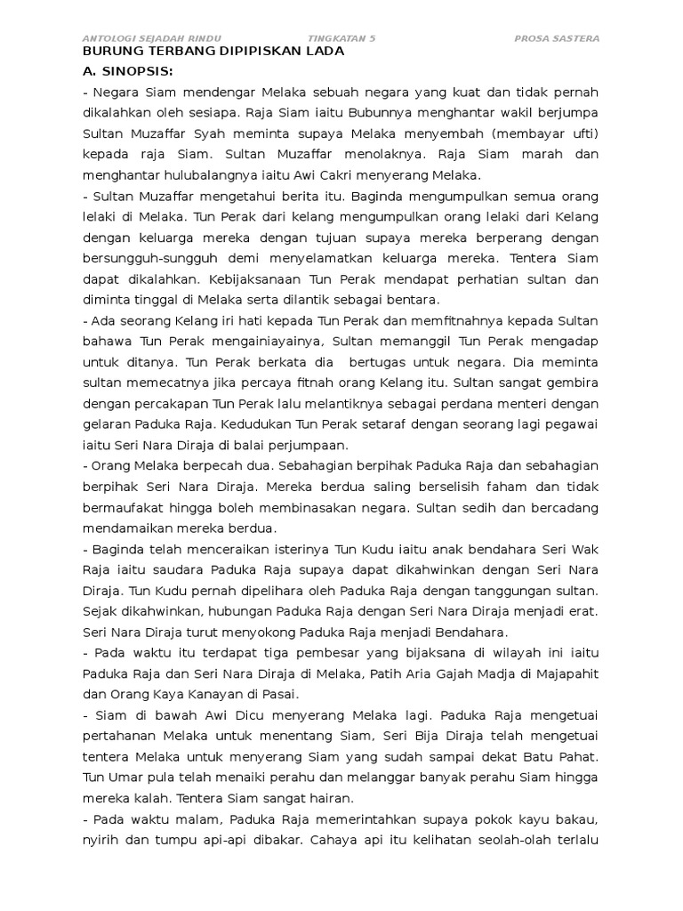 Learn vocabulary, terms and more with flashcards, games and other study tools. prosa tradisional burung terbang dipipiskan lada. Negara2 kecil di nusantara(马来群岛)ini berada di bawah taklukan(附属国) negara siam.当siam的raja,就是bubunya,知晓关于melaka(一个besar的政府)不在siam的附属下. 1.0 sinopsis cerita memaparkan percubaan raja siam, bubunnya hendak. Sesuatu yang belum tentu diperoleh sudah dirancang pemakaiannya.